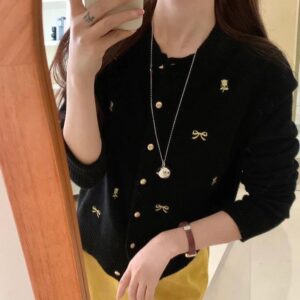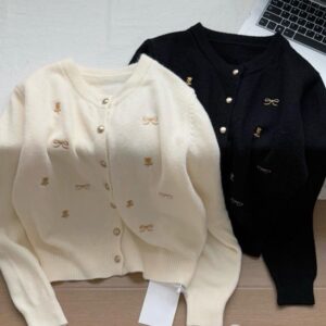 刺繡蝴蝶結針織外套