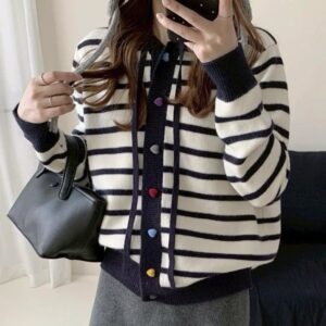 彩色愛心釦條紋帽T